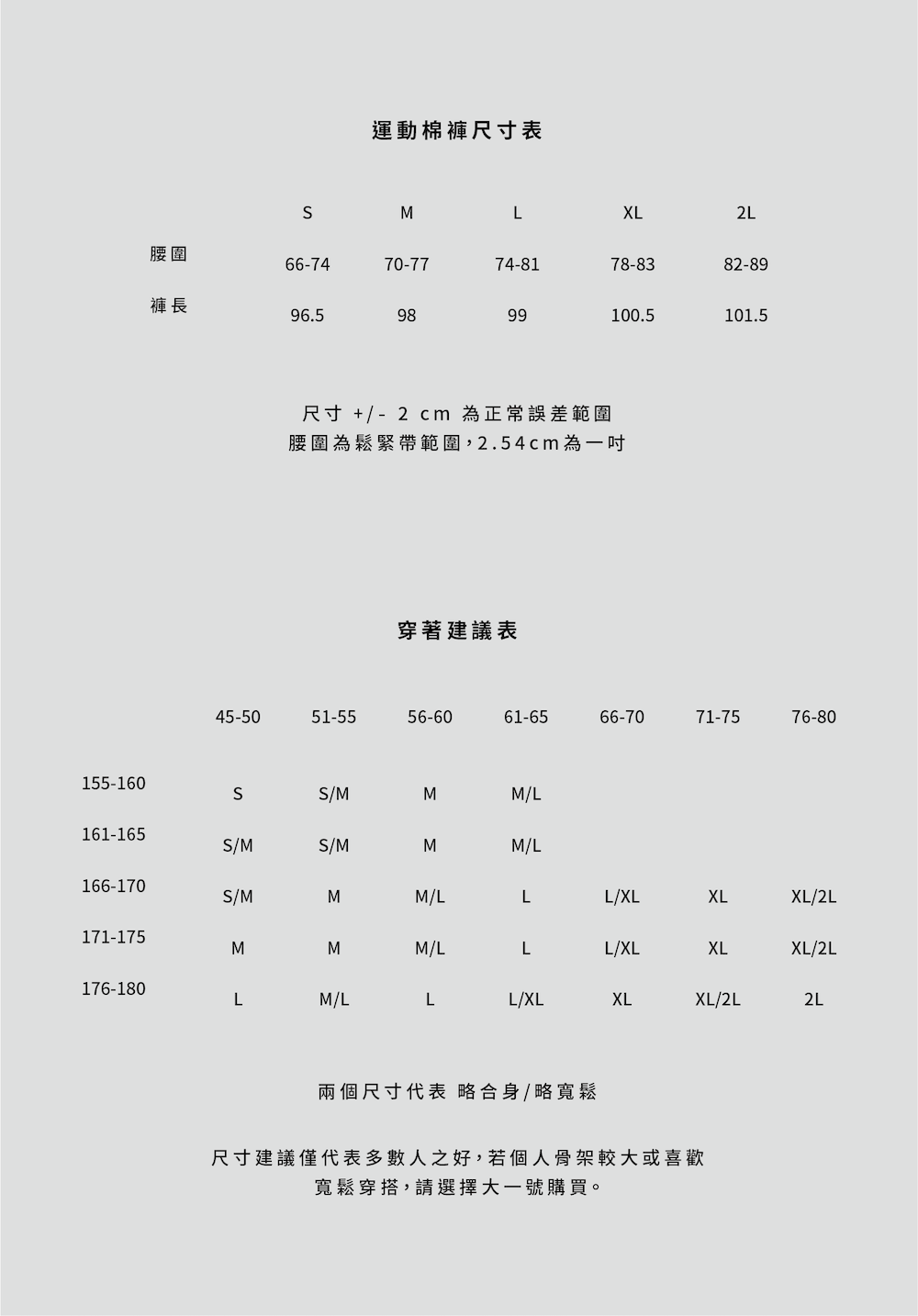 尺寸建議_運動棉褲